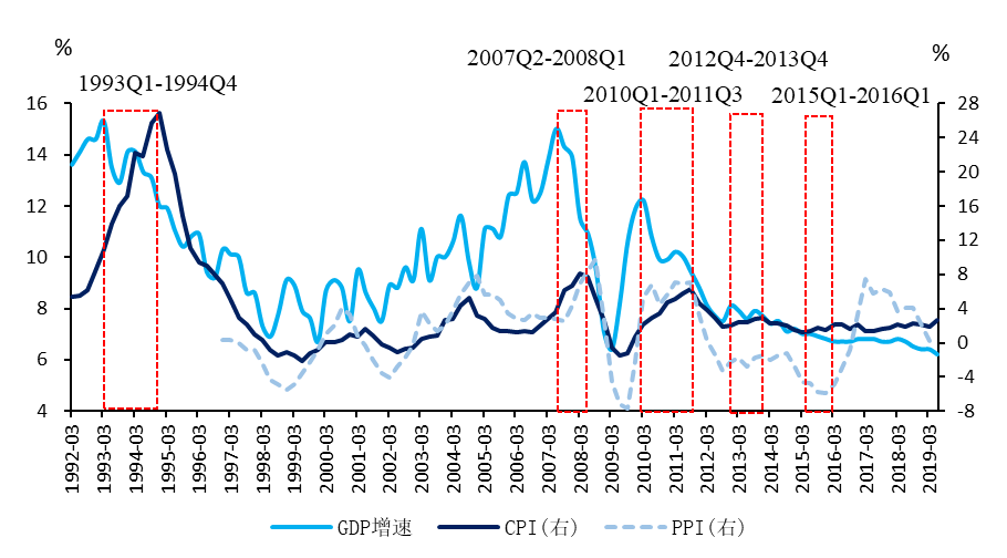 自2019年二季度开始,我国已经处于“微滞胀”的状态,预计将持续至2020年一季度。