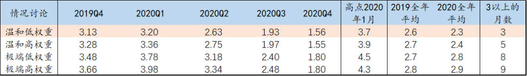 结合上述讨论,我们认为,温和低权重是最有可能的情形。