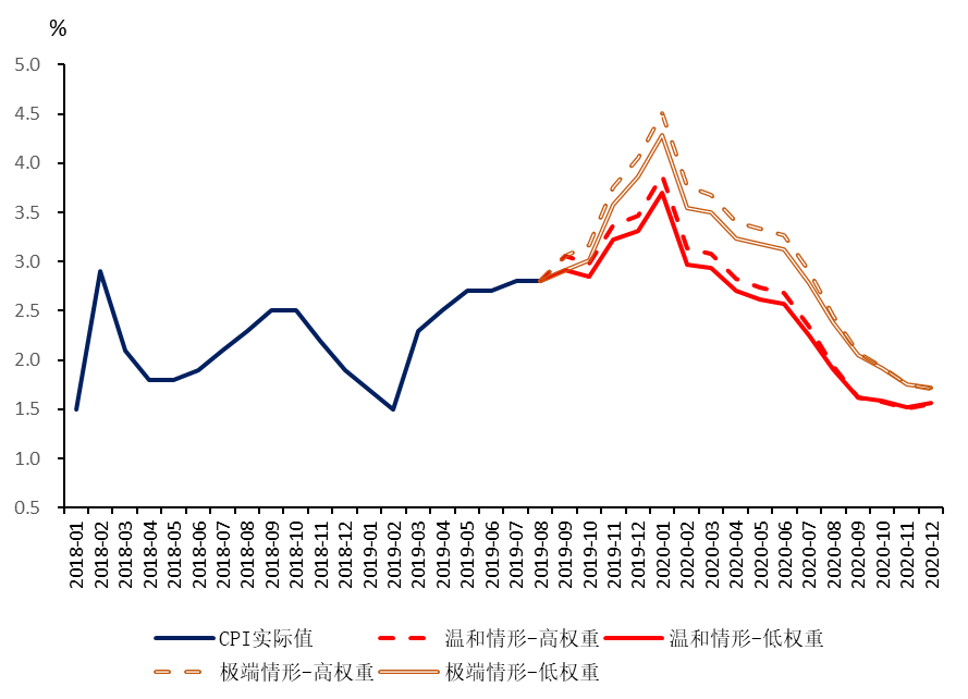 我们对2019年四季度和2020年通胀走势进行了测算(具体方法见完整报告),并对猪肉和原油价格走势做出假设。
