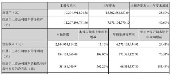 科大讯飞10月24日晚间公布第三季度业绩报告显示,前三季度实现营业收入65.73亿元,同比增长24.41%;归属于上市公司股东净利3.74亿元,同比增长70.51%;扣非后净利同比增长183.49%。其中,第三季度实现净利1.84亿,同比增长108.06%。