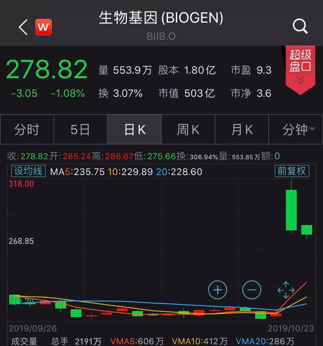 上述重启消息宣布后,百健公司股价一度上涨超30%,几乎挽回了3月宣布终止研究后损失的180亿美元市值。截至当地时间10月23日收盘,百健公司收于278.82美元/股,跌幅1.08%,最新总市值约503亿美元。