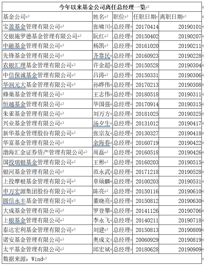 今年以来,已有包括朱雀、宝盈、鑫元基金在内的三家基金公司前任总经理跳槽至其他基金公司担任副总经理一职。