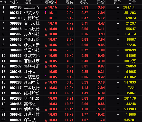 与区块链同样炽热的还有数字货币板块。其中整个数字货币板块在开盘后几乎直奔涨停,板块内仅5只个股尚未涨停。