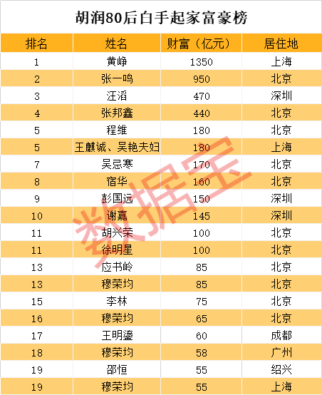 今日,胡润研究院发布了《2019胡润80后白手起家富豪榜》。这是胡润研究院连续第4次发布此榜单,财富计算的截止日期为2019年8月15日。