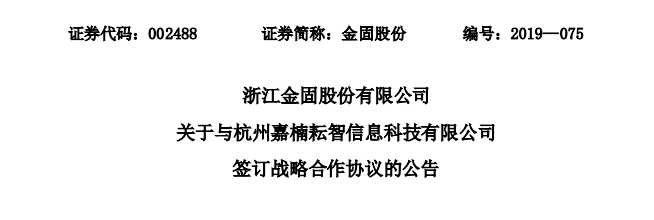 10月28日,金固股份(002488.SZ)公告与杭州嘉楠耘智信息科技有限公司(下称“嘉楠耘智”)签订战略合作协议,拟成立合资公司,将区块链技术与汽车维修结合。政策因素致使区块链概念公司股价大涨,金固股份股价28日下午涨停。