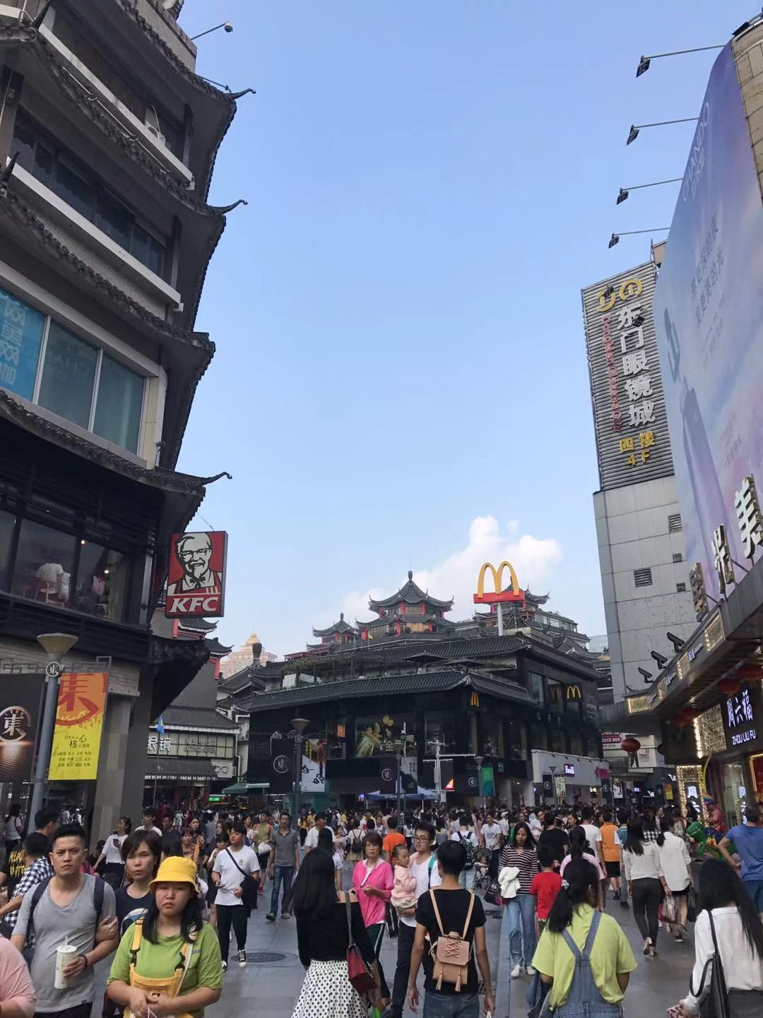 周末,东门步行街的人气。(吴家明/摄)