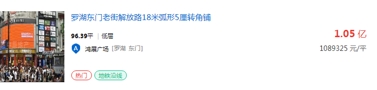 记者在东门町美食广场调查发现一家面积不到10平方米的小店,月租金就超过15000元。而在鸿展广场,一间弧形转角临街铺位的叫价竟超过每平方米100万元。