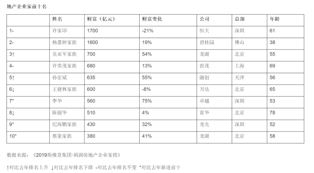 今日,2019年胡润房地产企业家榜单出炉,首富许家印以及曾经的首富王健林均财富大幅缩水,“接盘侠”孙宏斌则财富增长225亿,亦有曾经的浙江女首富周晓光等多家房企遭遇债务危机,跌落榜单。