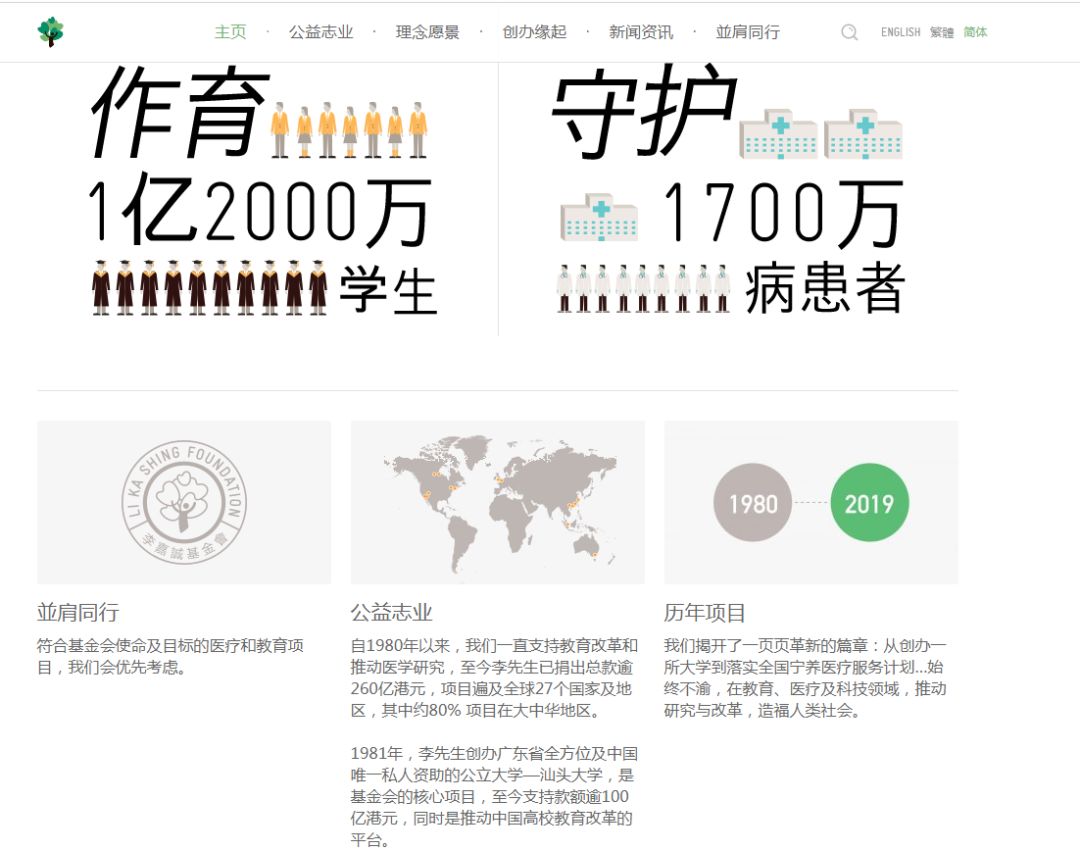 李嘉诚基金会于1980年创立,主要专注于支持教育及医疗项目。至今李嘉诚已捐出总款逾250亿港元,项目遍及全球27个国家及地区,其中约80%项目在大中华地区。