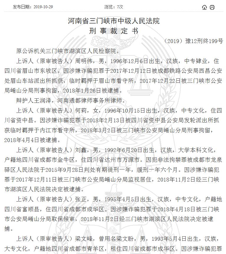 相关不法分子通过盲加微信、群发短信等方式“打资源”,并采取展示虚假盈利、提供虚假配资、诱导受害人在高杠杆下频繁交易等诈骗形式,造成被害人资金严重亏损。值得注意的是,案件相关人员绝大多数为90后,均因此获刑。