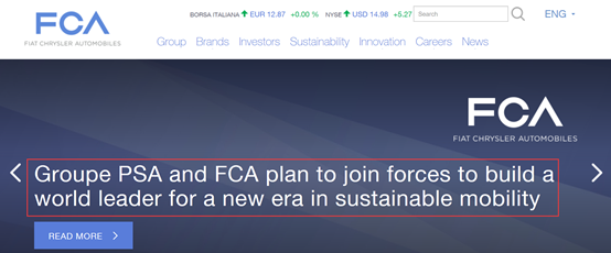 门当户对的巨头联姻来得太快!全球第七大车企菲亚特克莱斯勒集团(FCA)和欧洲第二大汽车制造商标致雪铁龙集团(PSA)昨日双双在官微宣布正在商讨合并事宜,今日就已正式宣布合并。菲克集团已在官网首页公布“婚讯”!