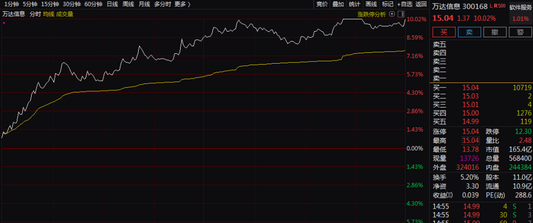 但中国人寿并未就此停止增持的步伐。8月末,中国人寿及其一致行动人第3轮增持后,合计持股占比达12.73%。9月中旬左右,中国人寿及其一致行动人进行第4轮增持,合计持有万达信息股份占比达14.78%;最近的10月18日,中国人寿又在二级市场买入万达信息152.21万股股份,中国人寿与其一致行动人合计持有万达信息15.03%的股份,构成第三次举牌。