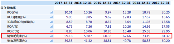 除了平均售价下降、市场竞争激烈等原因,致使2019年上半年西藏水资源的整体盈利下降的原因还有逐年下降的毛利。
