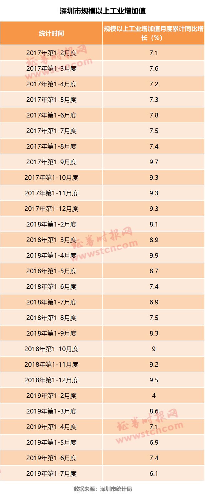 这种外迁潮对深圳经济的影响早已有所体现。根据深圳公布的数据,深圳2019年1-7月规模以上工业增加值月度累计同比增长6.1%,从2015年的1-7月增长7.8%开始,每年同期的增幅均有下降。