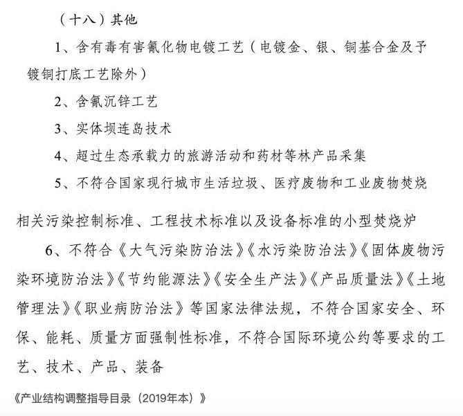 《产业结构调整指导目录》自2005年起发布,目录将各产业分为“鼓励类”、“限制类”、“淘汰类”三类。其中淘汰类主要是不符合有关法律法规规定,不具备安全生产条件,严重浪费资源、污染环境,需要淘汰的落后工艺、技术、装备及产品。