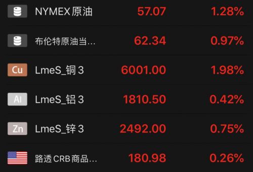 全球主要的大宗商品同样在反应乐观预期。