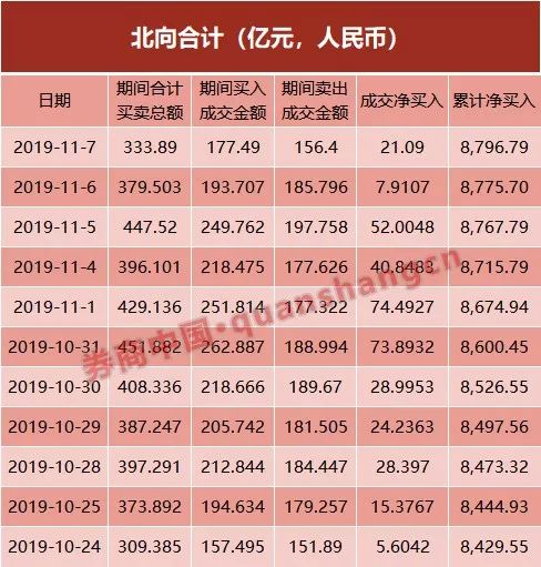 自10月24日以来,北上资金连续11个交易日净买入A股市场,两市净买入金额达372.8亿元。