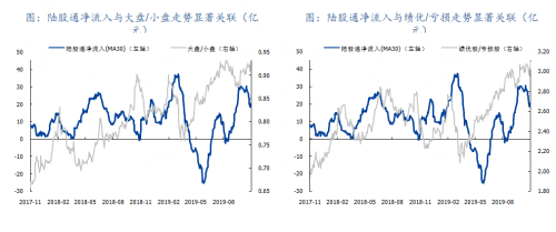 2018年以来,外资对于国内市场的驱动力加速显化,北上资金流入与大盘/小盘、绩优股/亏损股等指数比都高度相关。