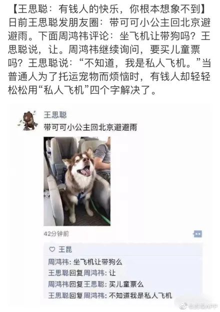 消息出来之后,网友们都在说,王思聪这下只能坐自己的私人飞机了。