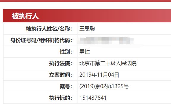 据中国执行信息公开网显示,11月4日,王思聪被北京市第二中级人民法院列为被执行人,执行标的151437840.0,约1.5亿。