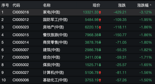 今日A股家电板块领跌,截至发稿中信家电指数跌超3%,板块市值蒸发约600亿元。
