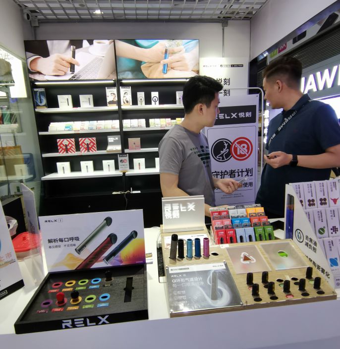 在中国,已经有一部分群体成了电子烟的忠实消费者,记者昨日在深圳华强北的华强电子大厦内,看到悦刻专卖前来了一对年轻恋人,他们已经抽了好几年电子烟,因为网上没法买,所以到现场选购。悦刻在华强北附近就有9家店,昨日下午记者在现场还看到一个许姓香港游客,他专程从香港过来购买,他称以前抽的电子烟太贵,他的朋友来深圳购买电子烟一次要买十多盒。
