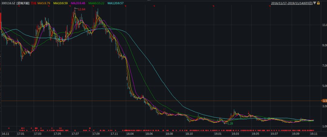 作为其上市主体即母公司,坚瑞沃能股价也经历了过山车般的起落,距离2017年9月份高位,其股价至今累计跌幅已近85%,市值直泄260亿元。