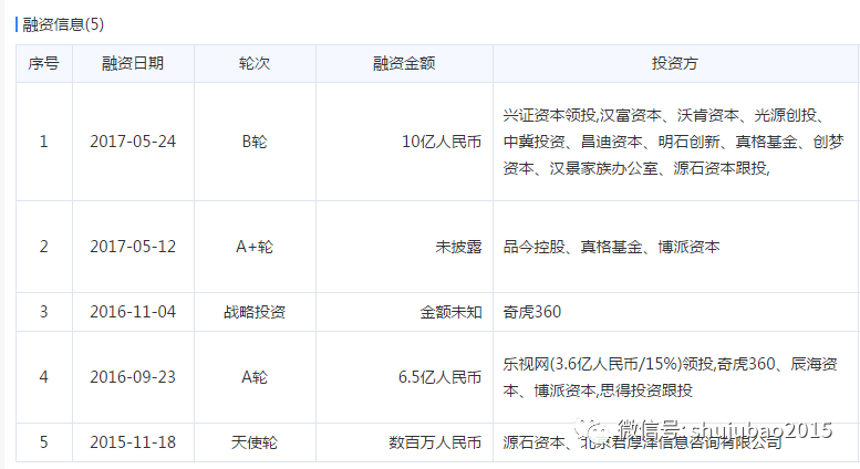 2016年9月完成由乐视网领头的6.5亿元A轮融资,其间,360于2016年11月战略入股熊猫直播,2017年5月接连完成A+轮和B轮融资。