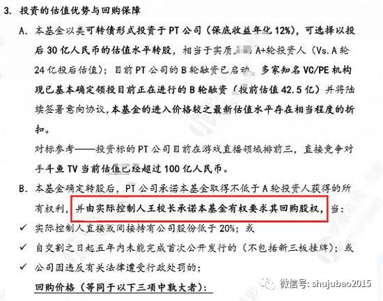 也就是说,一旦公司亏钱乃至倒闭,王思聪必须以年息12%的价格,回购投资方的股票。