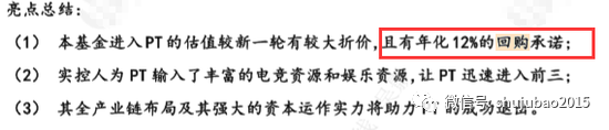 根据媒体的报道,事后披露出来的某只单一投向熊猫TV的股权投资产品材料显示,当时为了拿到融资,王思聪承诺了年化12%的回购权。