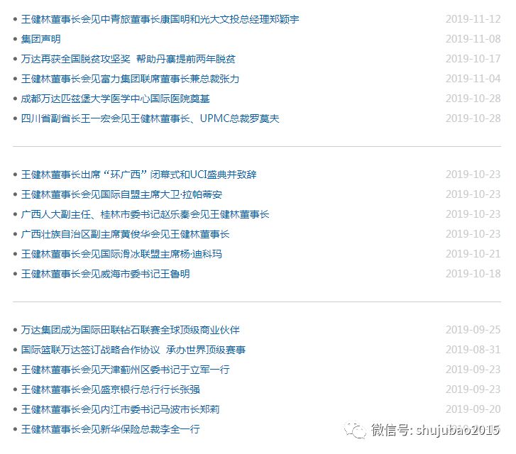 而从万达官网可知,近半年来,王健林参加了近50次的会见。最多的是会见企业领导或赛事主席等,此外是省市领导们的会面。其中会面、活动多以文旅、体育、金融为主。