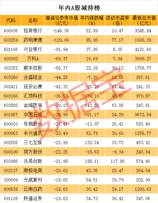 基本面良好的股票,股东减持或许不会影响其整体走势。比如招商银行今年被股东净减持超过146亿元,股价却大涨近53%。药明康德被减持超过129亿元,股价大涨近86%。此外,兴业银行、万科A、顺丰控股等个股被减持均超过50亿元,但股价表现都比较稳健。