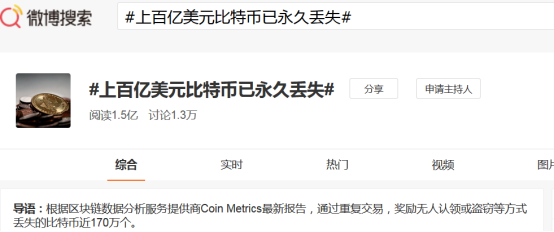 消息一出,引发多方热议,#上百亿美元比特币已永久丢失#还登上新浪微博热搜榜,一度排名第7位。