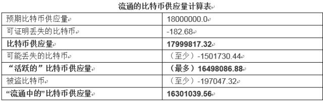 Coin Metrics报告最终算出实际流通中的比特币供应量约为1630万,流通中丢失量近170万个BTC。