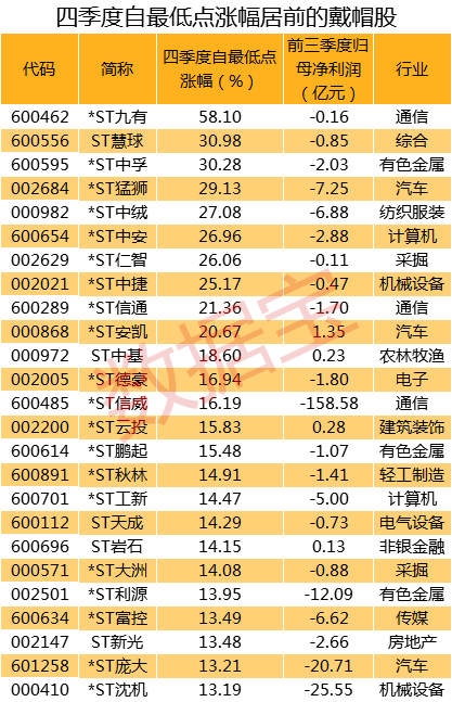 股价多日低于1元的*ST鹏起已收获连续3个涨停,最新股价0.97元,距离1元警戒线近在咫尺。公司去年巨亏38亿,今年前三季度依然亏损;经营内控上也是较为混乱。因存在多项违规担保,公司及多名高管被上交所公开谴责。