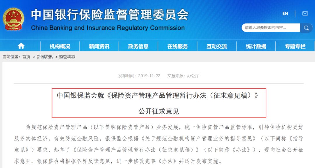 11月22日,银保监会就《保险资产管理产品管理暂行办法(征求意见稿)》公开征求意见,监管层明确要求打破刚性兑付、消除多层嵌套、去通道、禁止资金池业务,不得承诺保本保收益,产品最低30万起投、可投非标,最高占比35%!