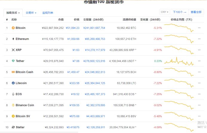 据信息与交易平台CoinMarketCap.com统计,市值排名前十的数字货币周五集体下跌、惨遭血洗。