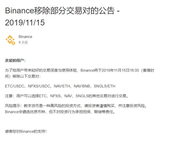头部交易所币安近期也开始移除部分山寨币,而下架的虚拟币中有不少是近期才上架的。