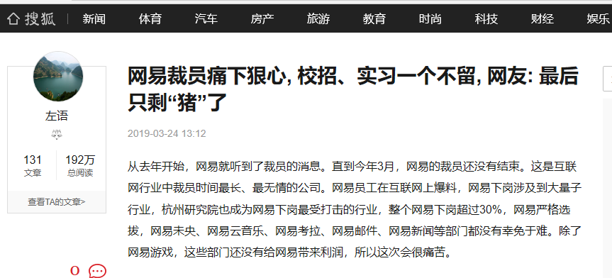 3月,有媒体报道称,网易裁员痛下狠心, 校招、实习一个不留;