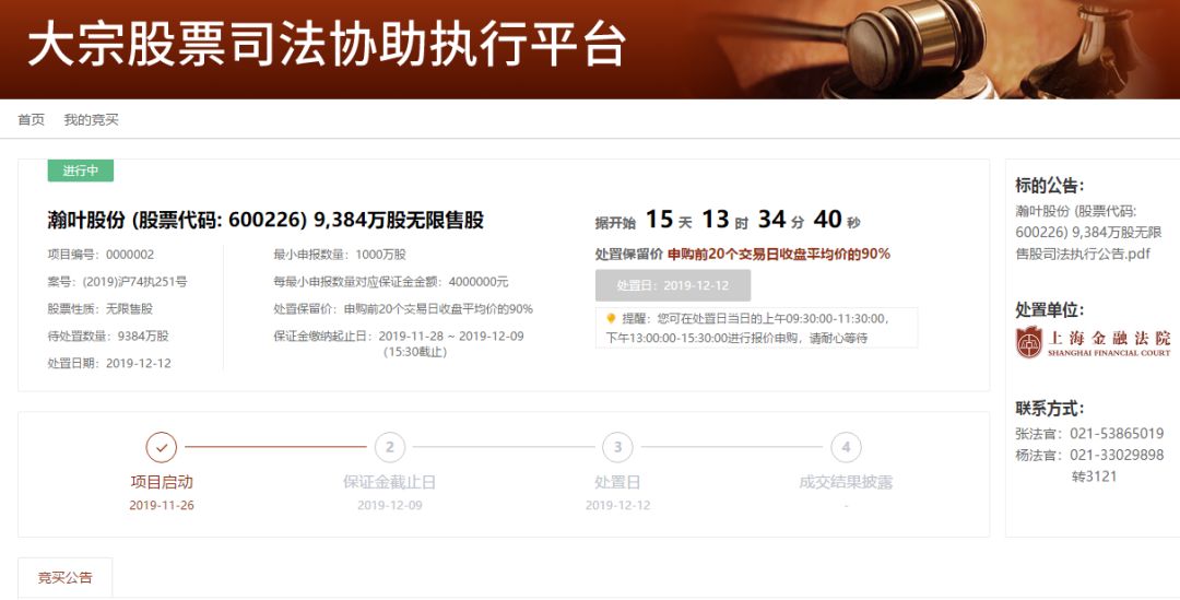 由上海金融法院和上交所合作推出的大宗股票司法协助执行平台(简称“执行平台”)11月26日正式启用,瀚叶股份(600226)成为首支拟通过该平台进行处置的股票。