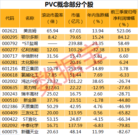 多只PVC个股年内涨幅不大