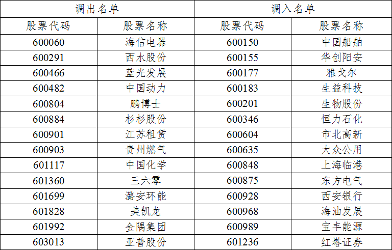 上证180指数更换18只股票,恒力石化、上海临港等股票进入指数,三六零、养元饮品等股票被调出指数。