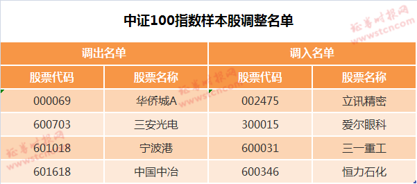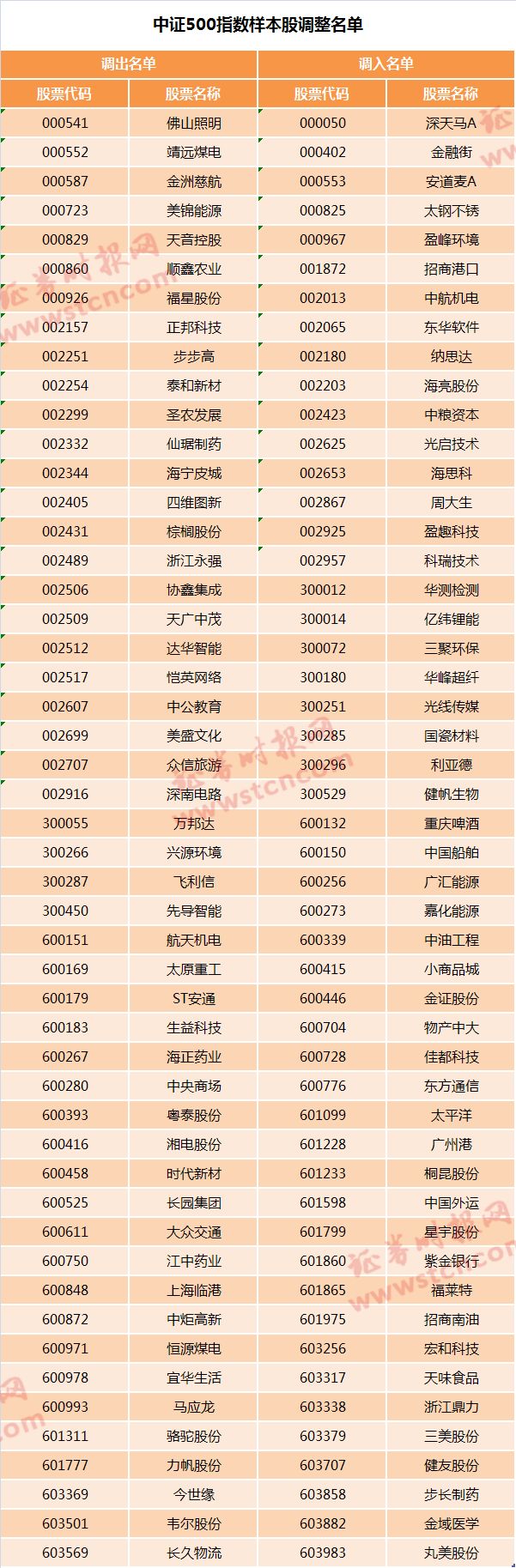 与此同时,中证100指数更换4只样本股,中证500指数更换50只样本股。