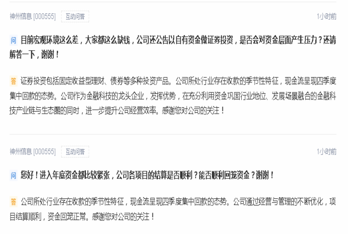 对此,神州公司也在回复中表示,目前临近四季度,现金流回笼正常,经营与管理优化。此时做投资,也是公司发挥金融科技龙头企业优势,利用资金巩固行业地位。
