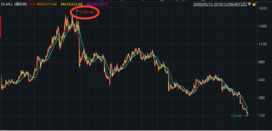 在德拉鲁的高光时刻,股价曾经高达1597.4英镑(约合人民币14771元),每股价格相当于10股贵州茅台!
