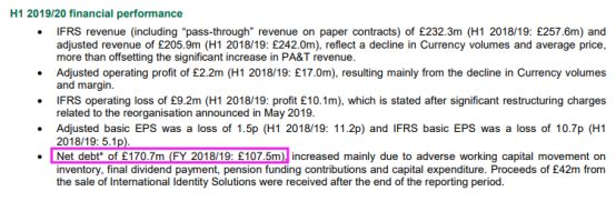 为了自救,新CEO以4200万镑将国际验钞解决方案出售,以缓解公司的流动性问题。