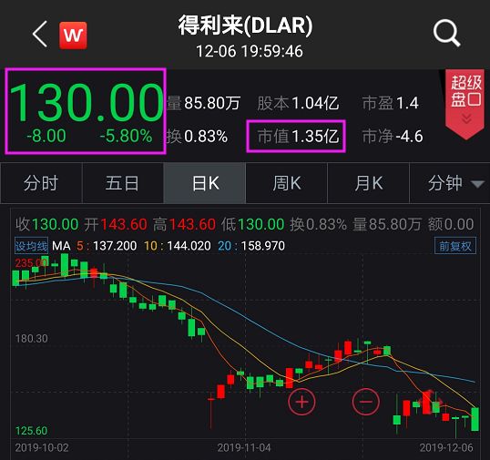 半年报公布之后,德拉鲁的股价27日,伦敦交易所开盘后,一度下挫约20%。截止到12月6日,德拉鲁的股价仅剩130英镑/股(不到高光时刻的1/10),市值仅剩1.35亿英镑,公司的债务水平已经远远超过了其总市值。
