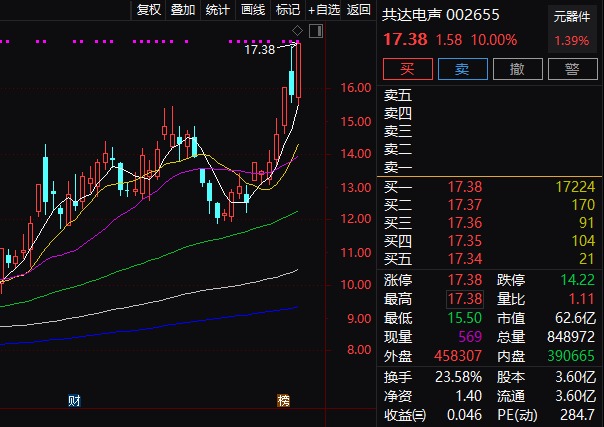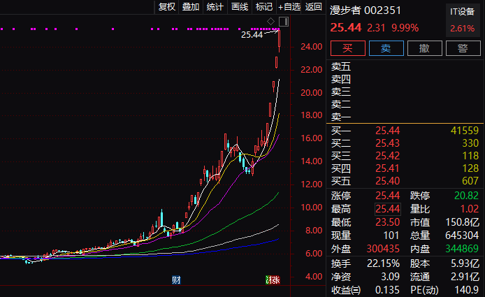今年6月初漫步者股价还低至4.9元,而后一路攀升,最近更是直线拉升,火箭发射般向上,涨停成为“家常便饭”,到12月10日收盘股价高达25.44元,股价为6月的5倍,涨幅高达419%。