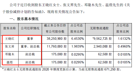 漫步者12月10晚公告显示,公司近日收到股东王晓红、张文昇、邓隆木、温煜的减持通知,这4人还是公司的董监高,王晓红为持股5%以上的董事,张文昇为董事、副总裁,邓隆木、温煜均为副总裁。4人拟减持不超1168.77万股,合计占比1.97%,王晓红、邓隆木、温煜3人拟顶格减持;减持原因为个人资金需求。