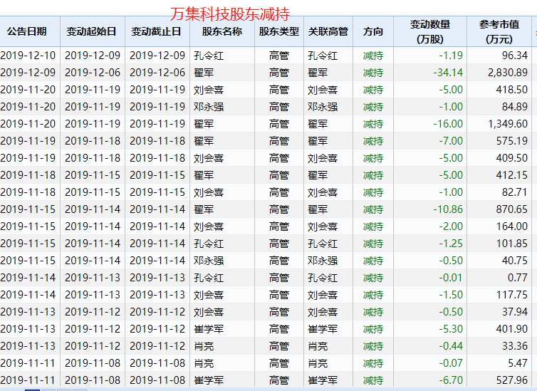 除了漫步者,今年涨幅超过4倍的另外几只牛股诚迈科技、万集科技、韦尔股份,也都在高位遭到重要股东减持。如ETC概念牛股万集科技,今年涨幅超过4倍,最近几个月公司高管不断减持。